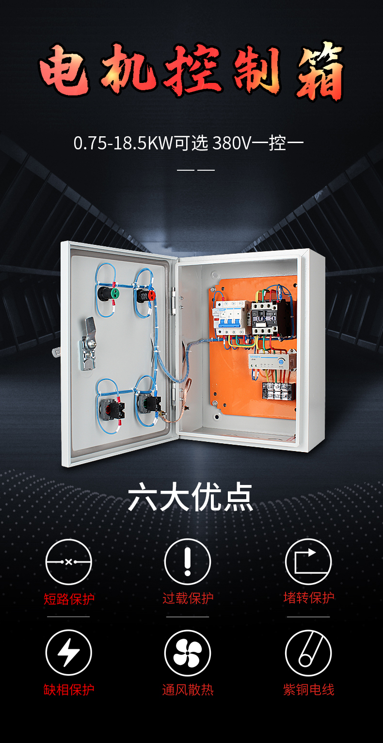 电机控制箱380V 水泵风机 三相过载缺相保护
