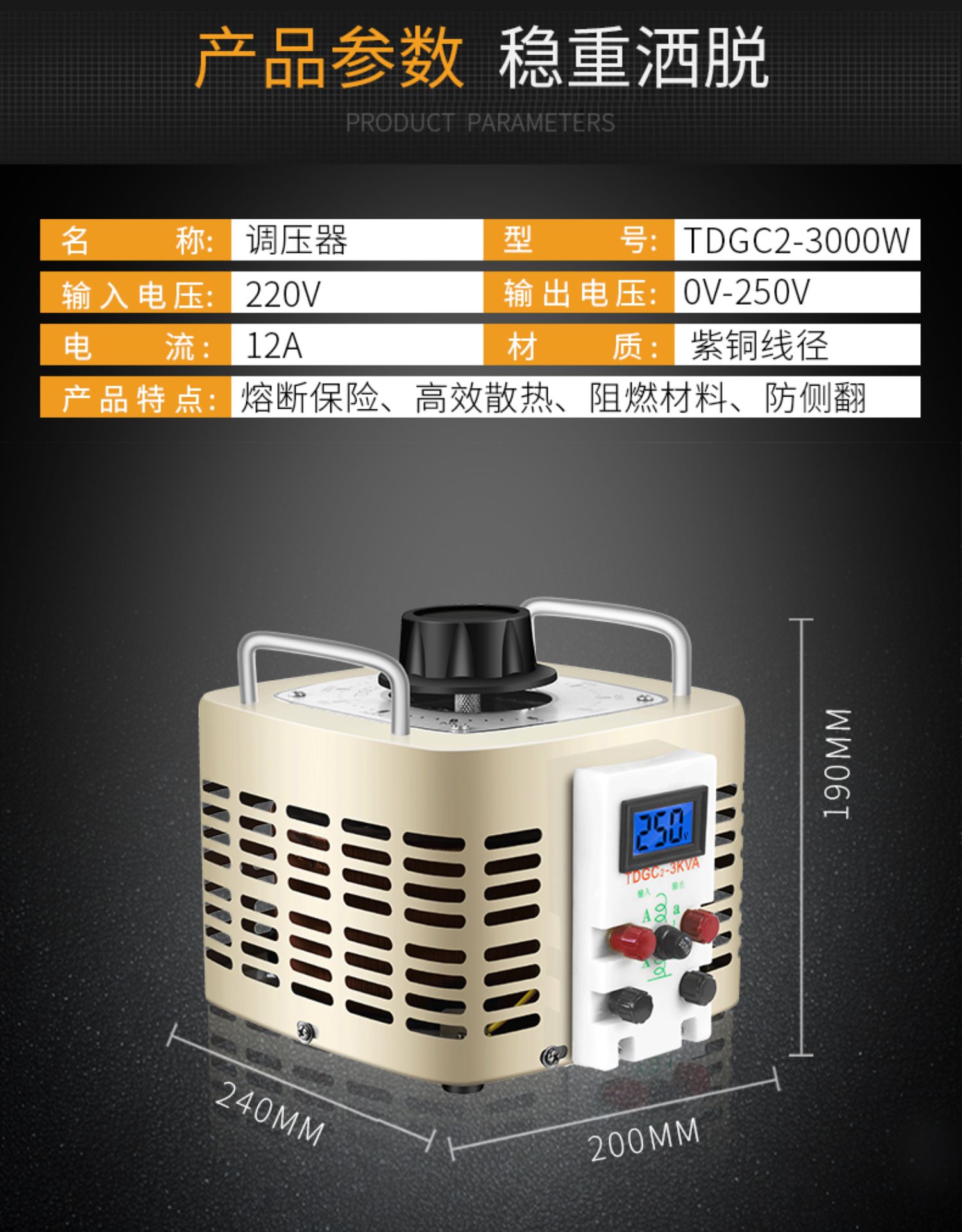 TDGC2-3KVA调压器 0-250v 接触式调压器
